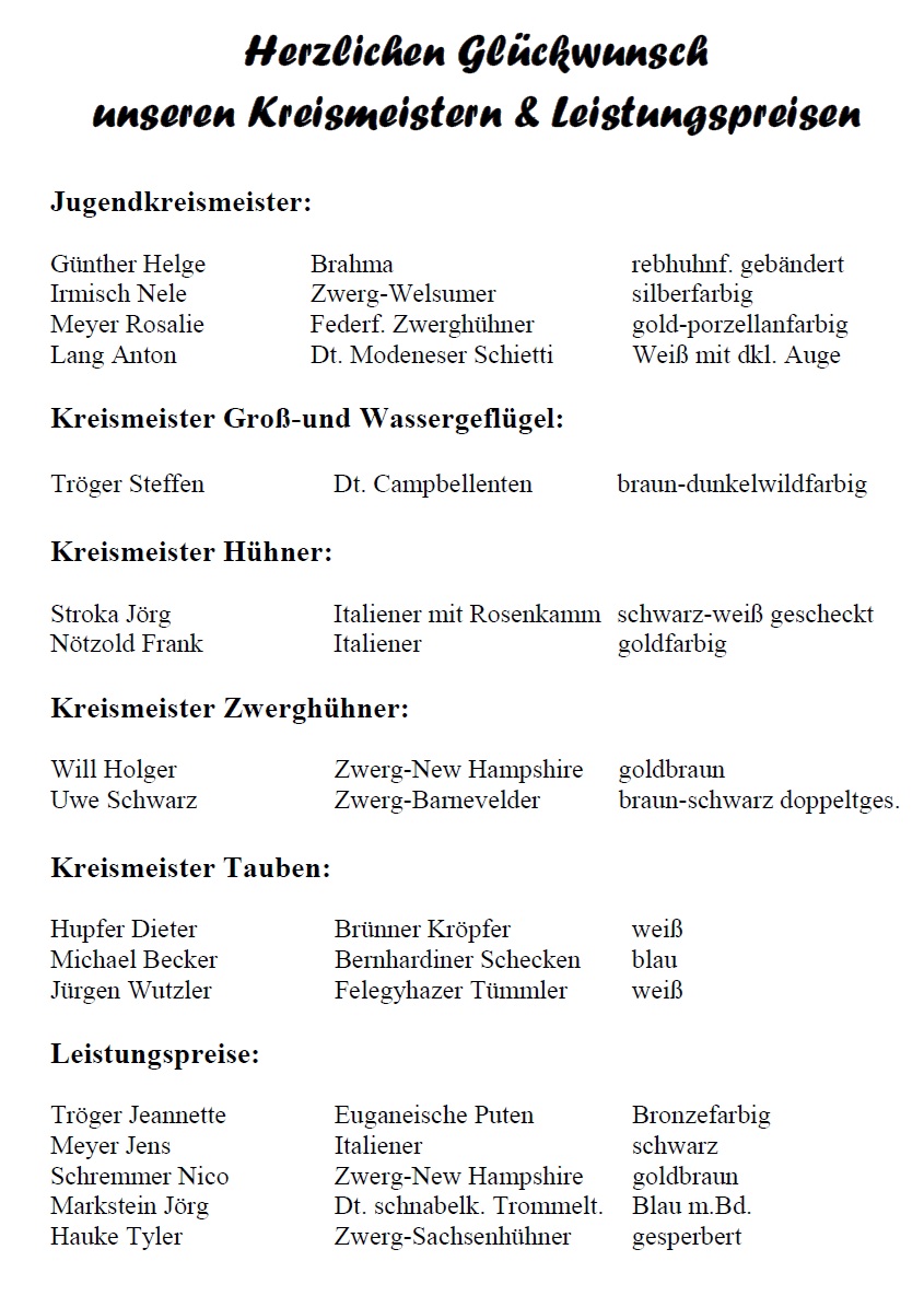 © Rassegeflügelzüchter Kreisverband Zwickau, Schönfelser Str. 12, 08115 Lichtentanne